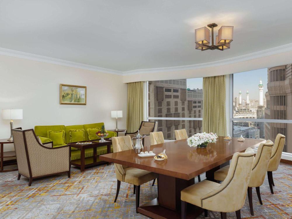 Featuring a view over the Haram, the largest and plentiful Family Suites are located on 1st-10th floors overlooking the Masjid Al Haram and occupies a vast area from 308 ft² / 1011 sq ft. Lavishly furnished living room and modern designed dining room with dining table that can sit up to 10, the family suites provide the ambiance of peace, tranquility and comfort. The lodgings are equipped with a separate bedroom and a dressing room, an office and a pantry to delight the most refined needs. Visionary design is combined with unreservedly elite comfort and state-of-the-art technology with two 32” & 40” LCD / IP TVs and In-Room Haram Audio. There are a Refreshment Center and a Coffee Maker at your convenience.